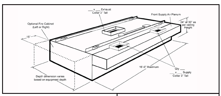 Ventilator is a conventional filter-type hood with continuous array of baffle U.L. Classified filter...